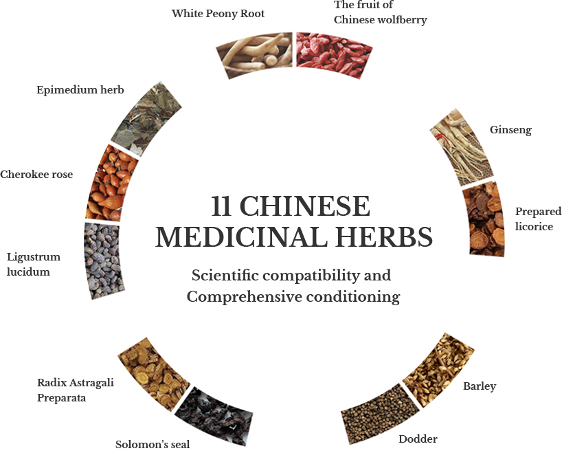 Formula Composition:The formula of Guhan Nourishing Essence products originated from the Yang Sheng Fang discovered in the 2,200-year-old Mawangdui Han Tombs. It comprises 11 Chinese medicinal materials: Ginseng Radix et Rhizoma, Astragali Radix Praeparata Cum Melle, Rosae Laevigatae Fructus, Lycii Fructus, Ligustri Lucidi Fructus (processed), Cuscutae Seman, Epimedii Folium, Paeoniae Radix Alba, Glycyrrhizae Radix et Rhizoma Praeparata Cum Melle, Hordei Fructus Germinates(parched), and Polygonati Rhizoma (processed), which are soundly combined to comprehensively improve health and simultaneously nourish the essence, qi and vitality.